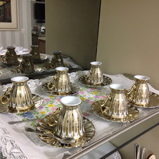Tinham conjuntos de copos/taças que nunca tinha usado.